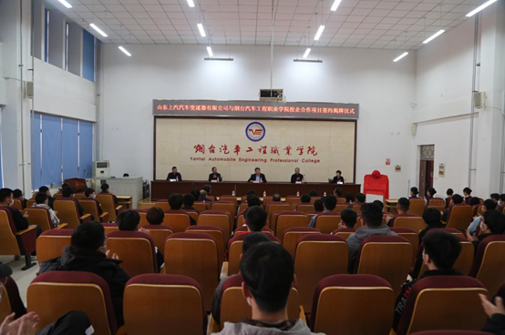 李广院长和浦兵总经理共同为“山东上汽汽车变速器有限公司Beat365中文官方网站校企合作班”、“山东上汽汽车变速器有限公司实习工场”、“山东上汽汽车变速器有限公司Beat365中文官方网站协同创新中心”揭牌,形成了多方面、全方位地校企合作新模式。学院与企业共同建立以校企双元为主体、学校教育与企业培训紧密联系的高素质技术技能型人才培养体系,共建实习工场,加强产学研项目合作,实现学校和企业之间无缝对接,成立汽车变速器技术协同创新团队,发挥双方资源优势进行技术交流、技术革新。