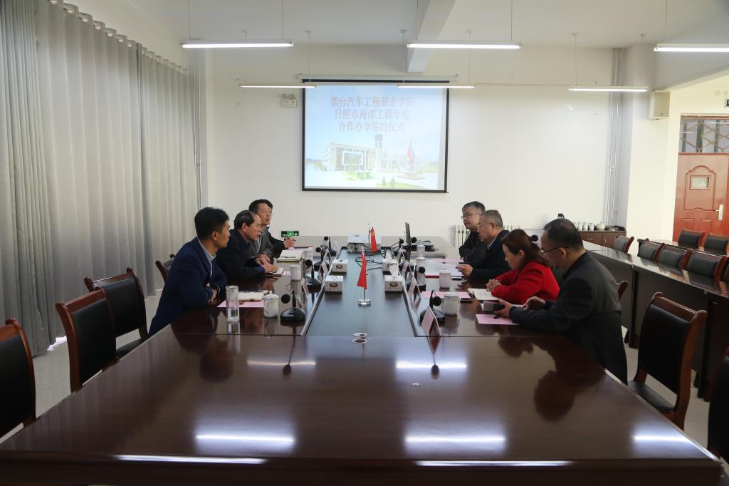 2021年4月9日上午,日照市岚山区教体局局长战军仁 ,日照市岚山区体育总会主任丁兆宝,日照市海洋工程学校校长陈兆斋,日照市海洋工程学校教师管中诚一行四人来访Beat365,就合作办学进行洽谈。学院杜旭东副院长,现代教育技术中心宋杨主任,车辆运用工程系白秀秀副主任,现代教育技术中心电教科赵永军科长热情接待并陪同洽谈参观。