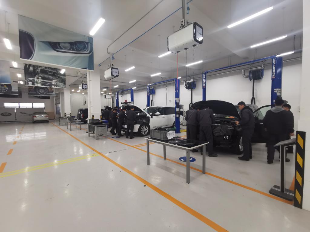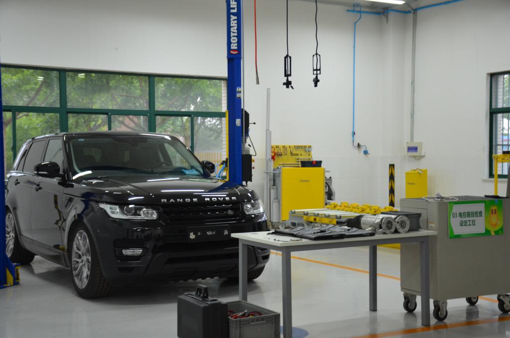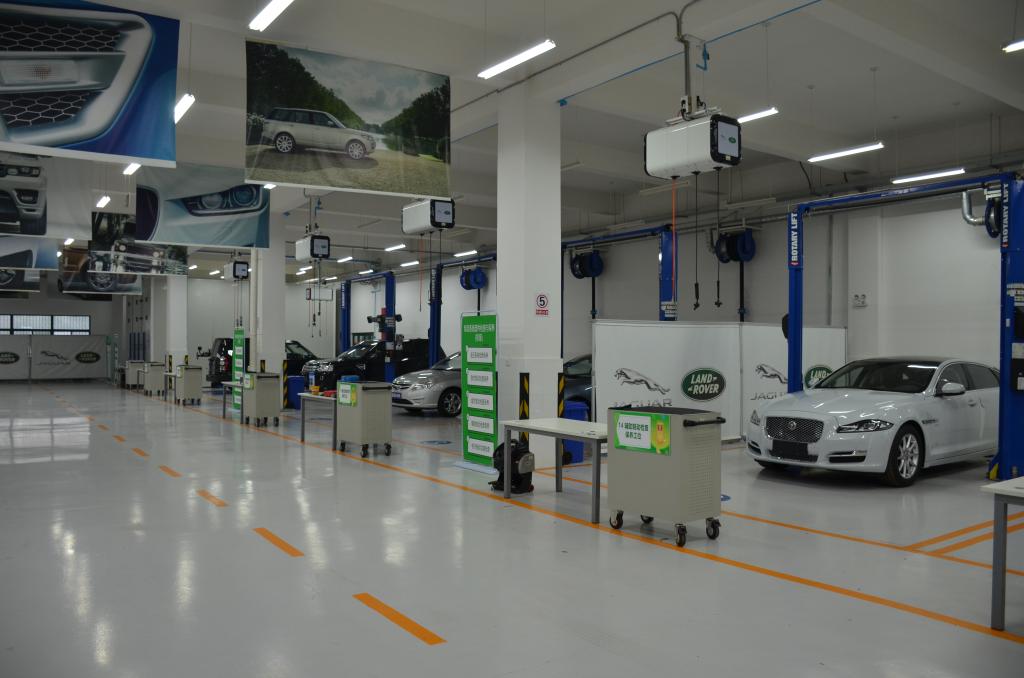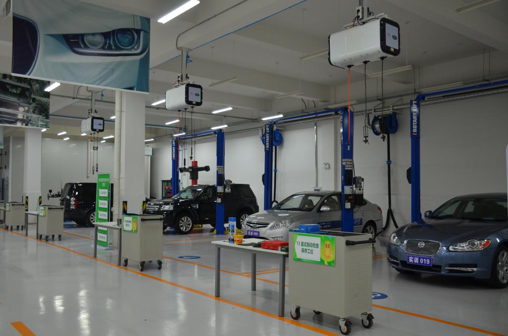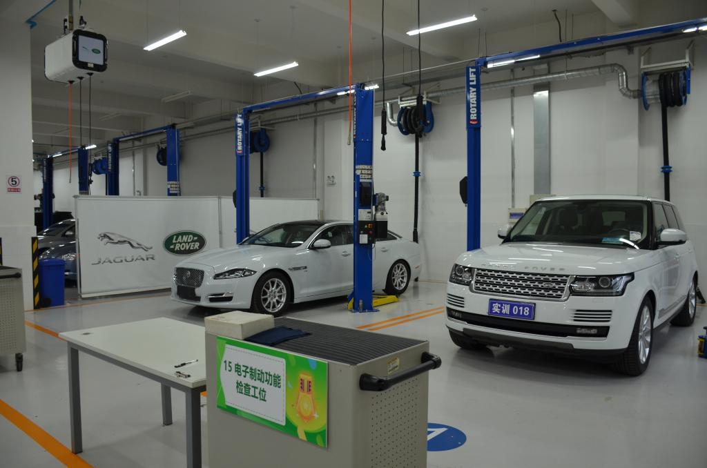 一楼实训场地是按照捷豹路虎中国统一的场地建设标准进行建设,各工位及配套设施和设备与捷豹路虎4S店完全一致,学生的学习环境对接实际工作场景。这六辆实训车是由捷豹路虎(中国)免费提供,定期更换,总价值460余万元,用于整车实训。整个培训项目采用现代学徒制培养模式,捷豹路虎中国定期选派讲师来Beat365进行授课,学员需要通过捷豹路虎全球一级和二级认证才能合格毕业。毕业后通过捷豹路虎的经销商网络进行实习与就业。