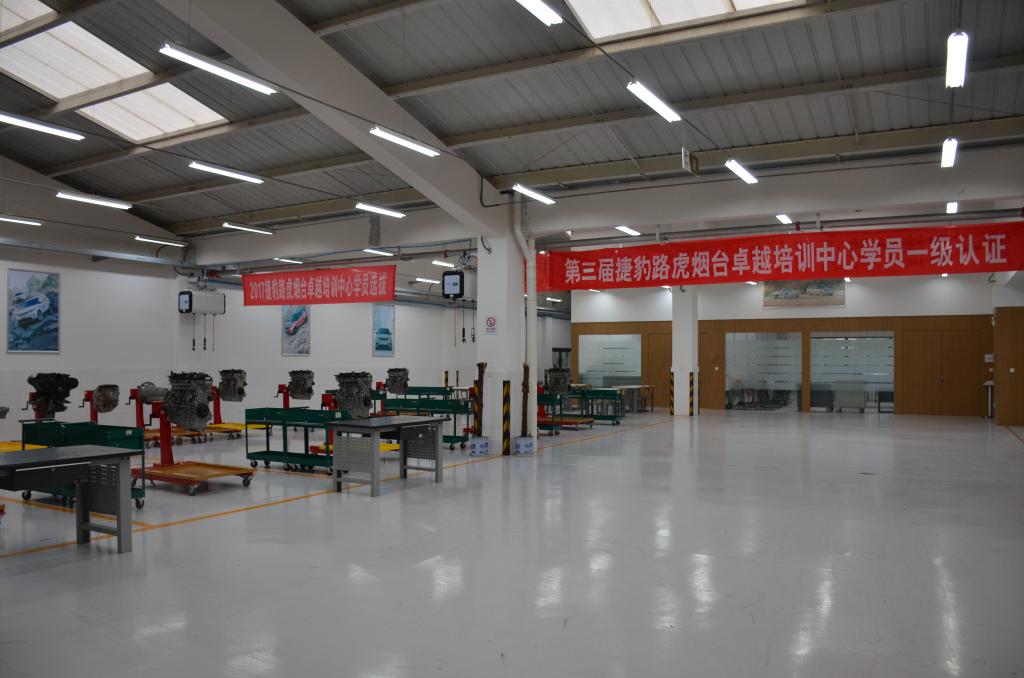 捷豹路虎烟台卓越培训中心是由捷豹路虎中国与本学院公同建设而成,总投资一千六百余万元,采用1:1投入的方式进行配比,建筑面积2400平方米,分为上下两层: