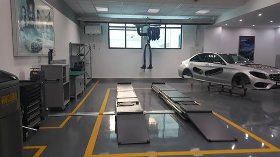 2015年12月,按照戴姆勒铸星教育项目场地建设标准、双方共投资投资600余万元,建成占地800㎡一期项目实训基地,并投入使用。2017年11月,投资300万余元的戴姆勒铸星教育项目二期实训场地基础建设完毕,双方将继续投入400万余元进行二期项目建设。目前该项目实训场地总规模达到1400㎡。