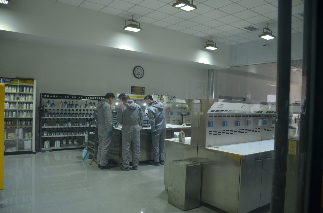 3.拥有油漆调漆室一间,配备先进的电子秤、调色灯箱、烤箱,可满足10人同时操作。
