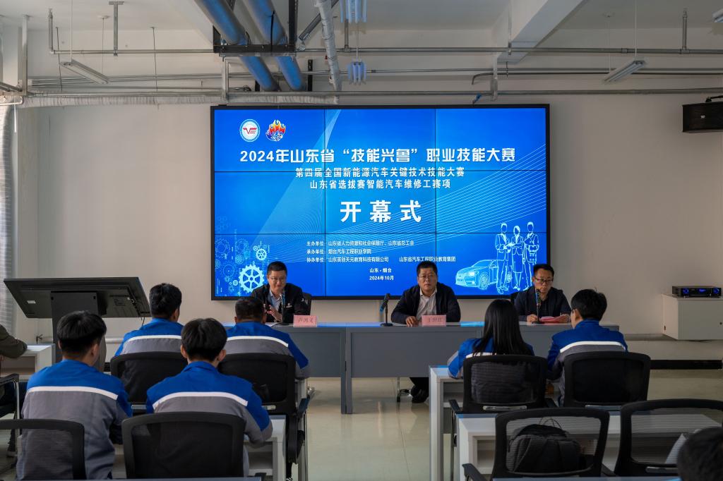 10月17日,2024年山东省“技能兴鲁”职业技能大赛第四届全国新能源汽车关键技术技能大赛山东省选拔赛智能汽车维修工赛项在Beat365中文官方网站开赛,来自全省的19支代表队参加比赛。Beat365中文官方网站副院长王世江、赛项裁判长卢鸿义、智能汽车工程系主任邹德伟出席,各参赛队领队、指导教师、参赛选手参加开赛式。