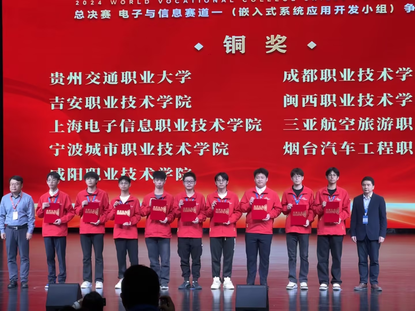 10月31日下午,2024年世界职业院校技能大赛总决赛电子与信息赛道-(嵌入式系统应用开发小组)争夺赛在湖北工程职业学院落下帷幕。电子工程系学生刘艳阳、齐书恒、王志伟三位同学扎实发挥了在嵌入式硬件设计、驱动开发、应用软件开发及人工智能应用开发等多个领域的专业知识能力,在赛场上沉着冷静,技能展示娴熟自如,行为表达大方得体,获得了世界职业院校技能大赛该赛项的铜奖。