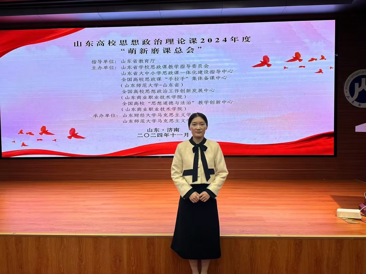 11月29日,由山东省教育厅指导,山东省学校思政课教学指导委员会、山东省大中小学思政课一体化建设指导中心、全国高校思政课“手拉手”集体备课中心、全国高校思想政治工作创新发展中心、全国高校“思想道德与法治”教学创新中心主办,山东财经大学马克思主义学院、山东师范大学马克思主义学部承办的山东高校思想政治理论课2024年度“萌新磨课总会”在济南举行。Beat365思政课教师袁美在“萌新磨课”年度总决赛中荣获一等奖。