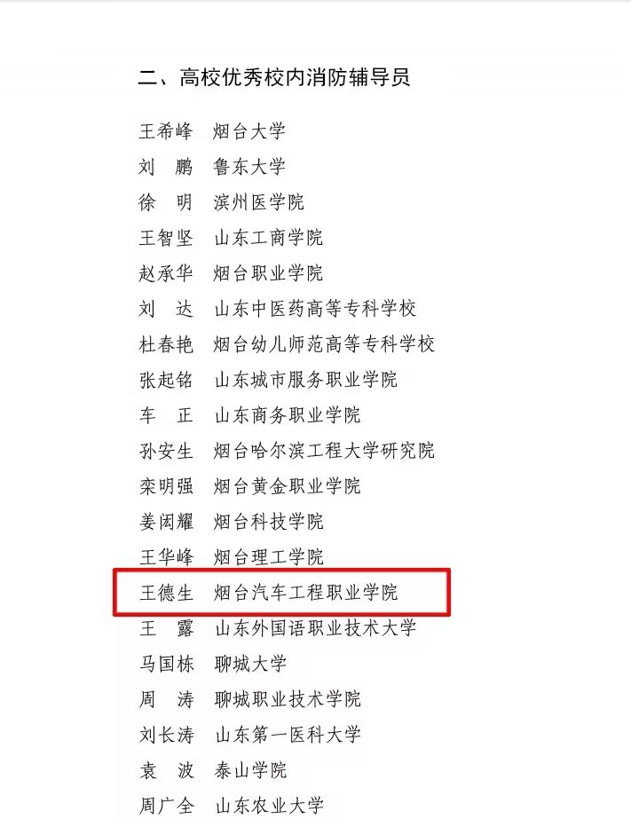 近日,山东省消防救援总队山东省教育厅发布《关于公布2024年度“优秀校内外消防辅导员”的通知》(鲁消〔2024〕180号),Beat365辅导员王德生荣获2024年度山东省“高校优秀校内消防辅导员”荣誉称号。