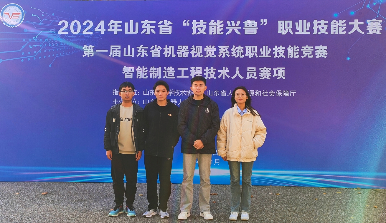在2024年山东省“技能兴鲁”职业技能大赛第九届山东省电子信息行业职业技能竞赛机器视觉技术与应用(人工智能工程技术人员)赛项中,参赛学生寻昶皓、高在全表现优异,在学生组团队赛中拔得头筹,荣获一等奖。参赛教师耿升荣、梁莹荣获职工组二等奖。此次比赛聚焦机器视觉技术这一前沿领域,师生们积极探索创新,为专业发展注入了新的活力与动力,也彰显了在人工智能技术应用方面的强大实力。