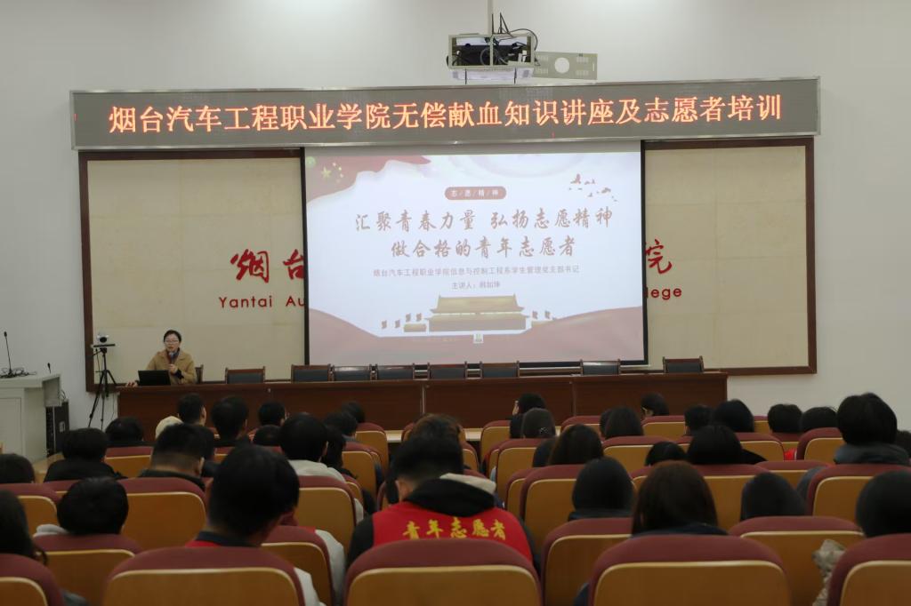 12月10日,Beat365中文官方网站携手烟台市中心血站,在B1教学楼第一会议室成功举办无偿献血知识讲座及志愿者培训活动。此次活动吸引了学院红十字志愿服务队与红色爱心之家共160位学生志愿者代表的积极参与。