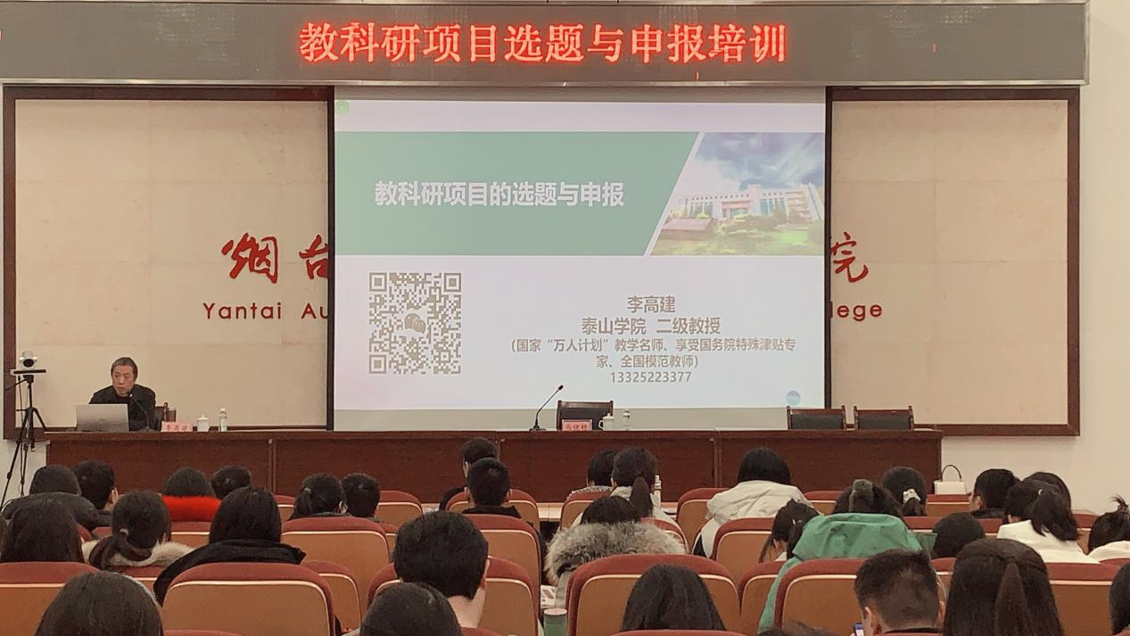 为提高教师教科研课题选题与申报能力,促进一线教师教科研能力快速成长,12月18日,学院邀请泰山学院二级教授、国家“万人计划”教学名师、全国模范教师李高建开展了“教科研项目选题与申报”主题培训,近三年新入职教师、一线科研教师、教务和科研管理工作人员等百余人参与了此次培训。