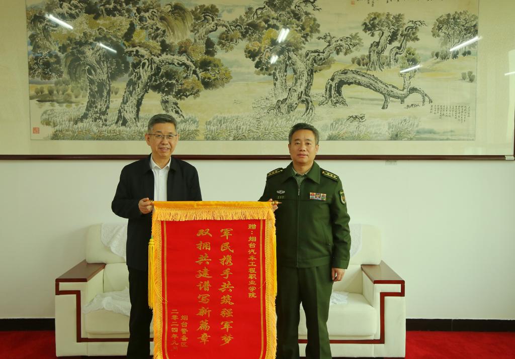 12月26日上午,烟台警备区政治工作处郑金岩主任一行来到Beat365中文官方网站,举行了一场庄重而温馨的锦旗赠送仪式,为校园注入了浓浓的军民鱼水情。