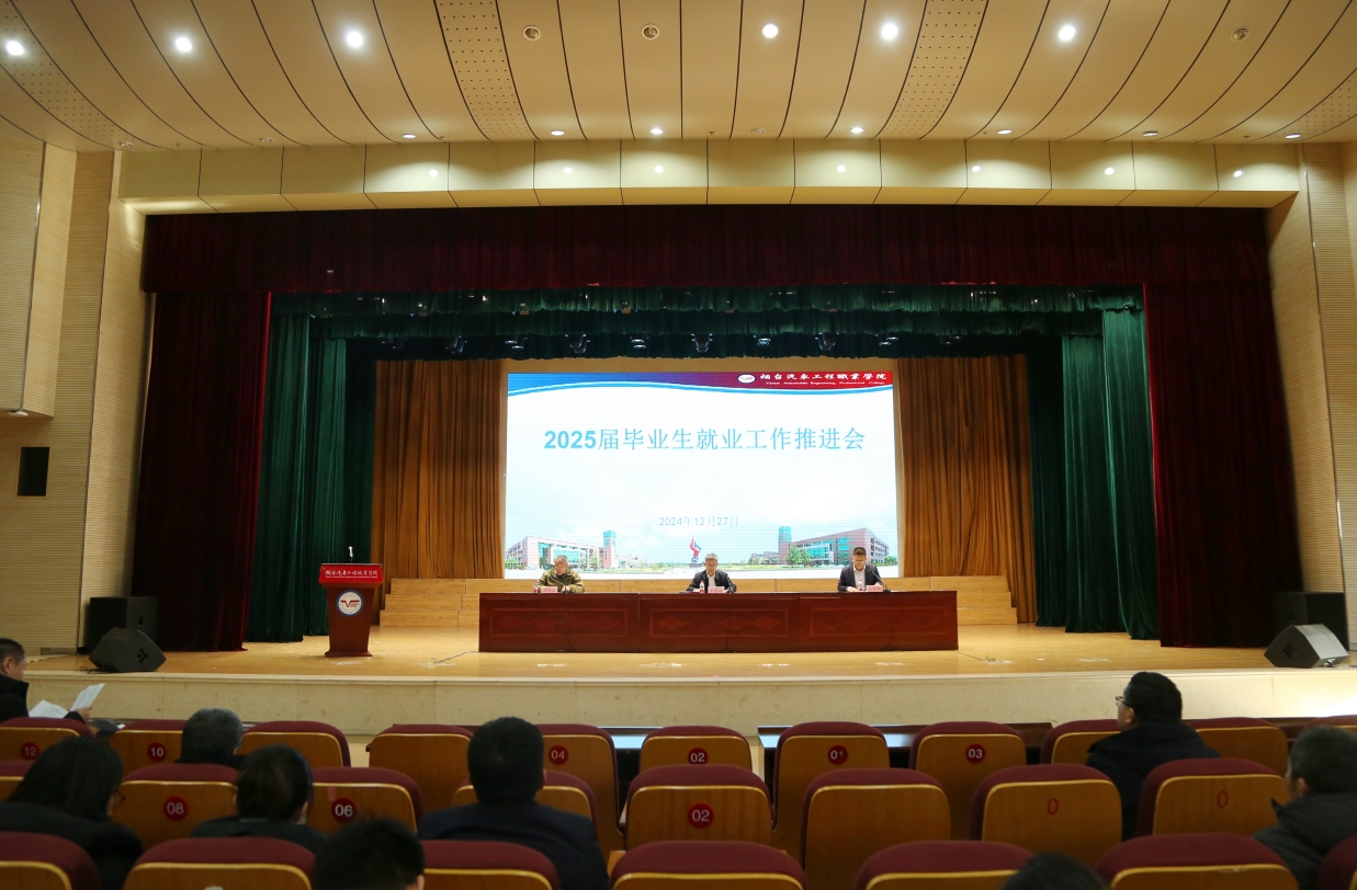 为深入贯彻党的二十届三中全会精神和全国教育大会精神,落实党中央、国务院关于做好高校毕业生就业工作的决策部署,根据 2025 届全国普通高校就业创业工作视频会议要求,按照省委、省政府相关工作部署,近日,学院在报告厅召开 2025 届毕业生就业工作推进会。学院党委书记秦桂建,分管副院长王世江,各处室、单位主要负责人,各系分管负责人及工作人员,2025 届毕业班专兼职辅导员,招生与就业处全体人员参加。会议由招生与就业处处长周福成主持。