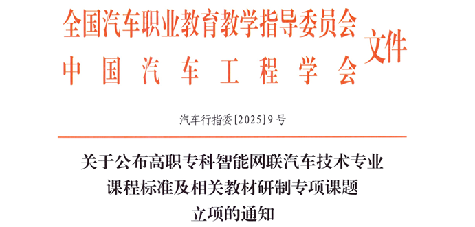 近日,全国汽车职业教育教学指导委员会发布通知,智能汽车工程系成功立项高职专科智能网联汽车技术专业课程标准研制项目和教材研制课题,进一步拓展了智能网联汽车技术专业课程改革方向。