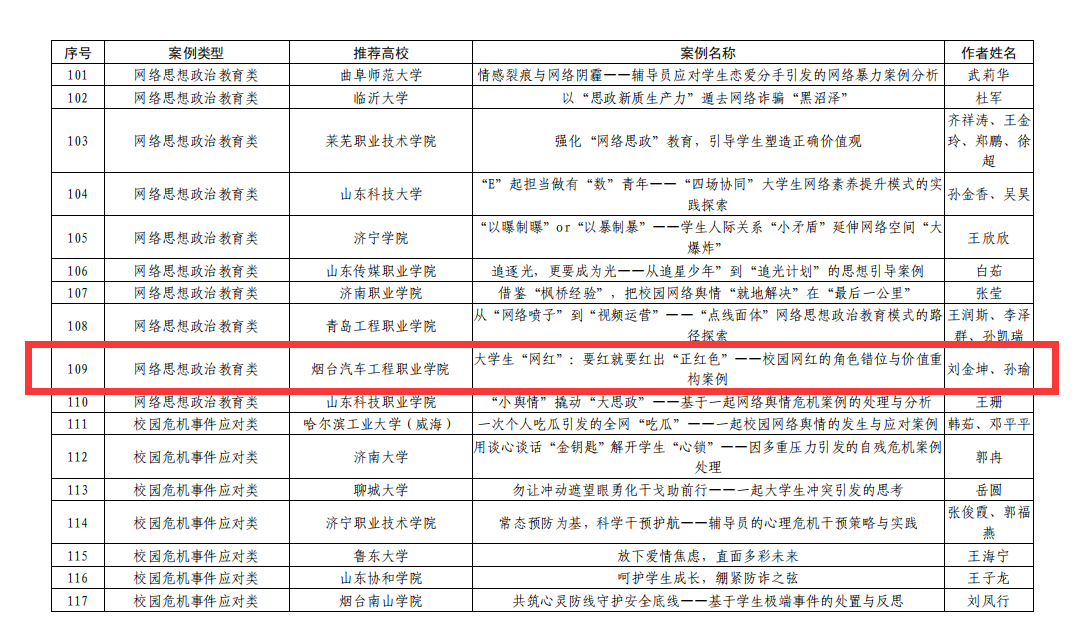 近日,学院在中共山东省委教育工委组织的2024年全省高校辅导员工作创新项目评选中取得新突破,荣获辅导员工作优秀案例一等奖1项、三等奖2项、辅导员主题班会优秀教案1项。