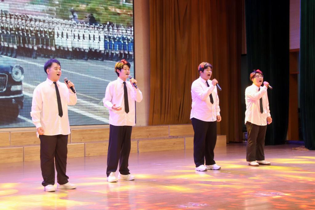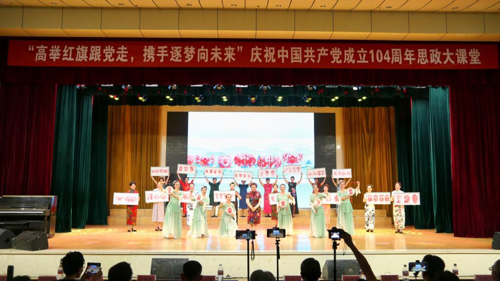 演出以“红色传承”为主线,通过合唱、朗诵、舞蹈、非遗展示等多元形式,展现老中青三代人对党的深情礼赞。市老干部合唱团以平均年龄65岁、党龄45年的深厚积淀,倾情演绎《永远跟党走》《强国力量》等经典曲目,再现老党员们矢志不渝的信仰;学院艺术团学生演绎的《新征程》《心中的那座桥》则彰显了青年一代的使命担当。特别节目《剪舞旗韵》将非遗剪纸与旗袍走秀创新融合,展现传统文化魅力;学院团委宣传部部长孙晓辉朗诵的《这是一张张怎样的脸》深情讴歌戍边英雄楷模,引发全场共鸣,演出在全场齐唱《歌声与微笑》的温馨氛围中圆满落幕。老干部与青年学子携手高歌,象征红色血脉的永续传承,生动诠释了“听党话、跟党走”的坚定信念,激励全体师生以更加昂扬的姿态投身全面建设社会主义现代化国家的新征程。