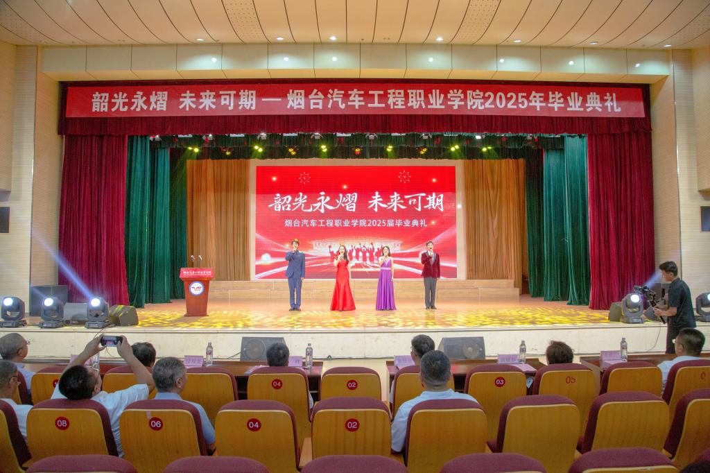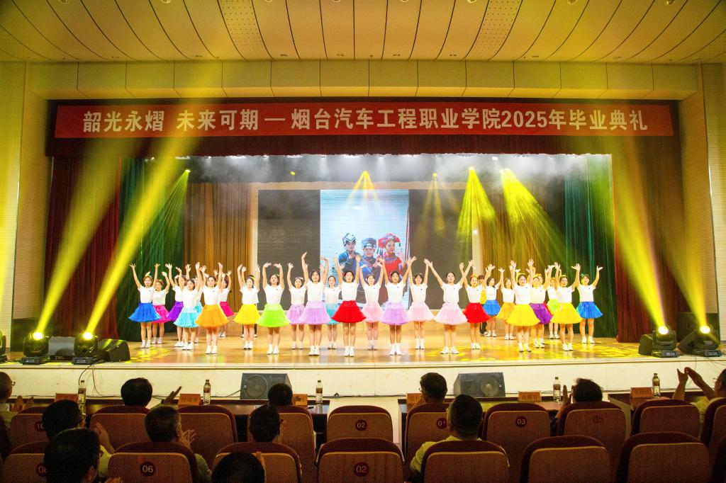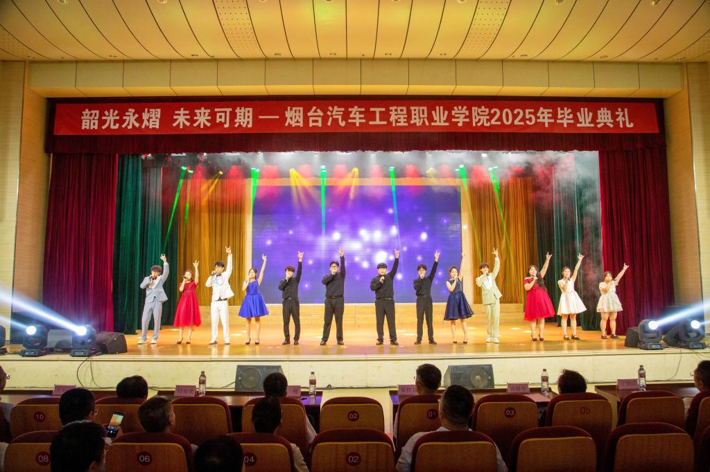 演出现场特别播放了“愿前程可奔赴”视频短片,记录了学生们三年来的精彩瞬间,开场歌舞《祝我们前程似锦》点燃全场热情,朗诵《奔跑吧青春》道出追梦决心,器乐演奏《最爱》唤起美好回忆,街舞《我的未来式》展现青春活力,舞蹈《花开在回家的路上》表达出同学们对母校的眷恋,小合唱《凤凰花开的路口》传递离别情谊……毕业典礼在《再见》的旋律中圆满结束。