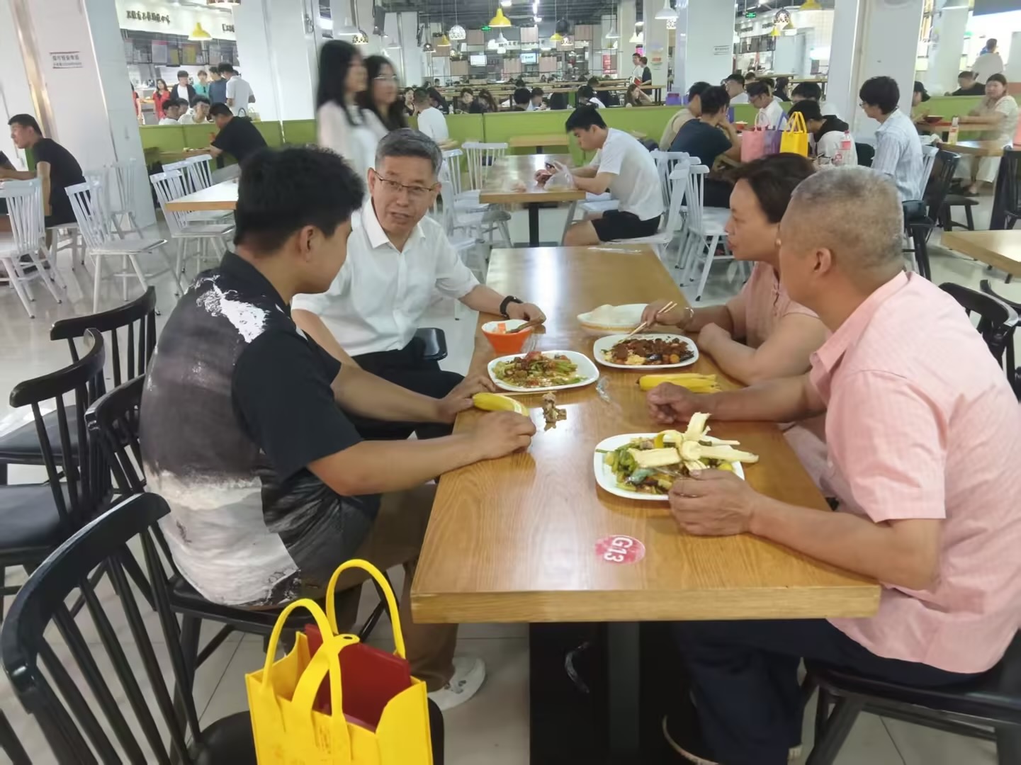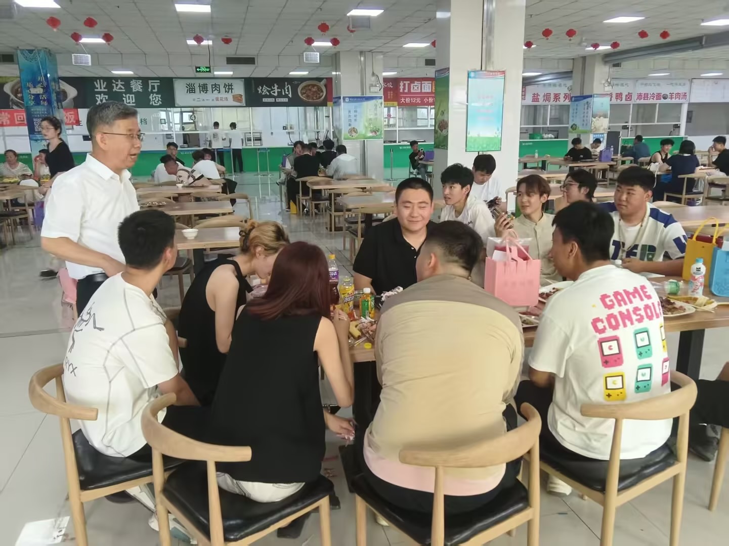 典礼结束后,党委书记秦桂建、院长郭峰一行前往食堂,与毕业生们亲切交流。“饭菜还合口味吗?”“工作落实得怎么样?”校领导关切询问毕业生们的就业去向和生活情况,叮嘱大家要常回母校看看。