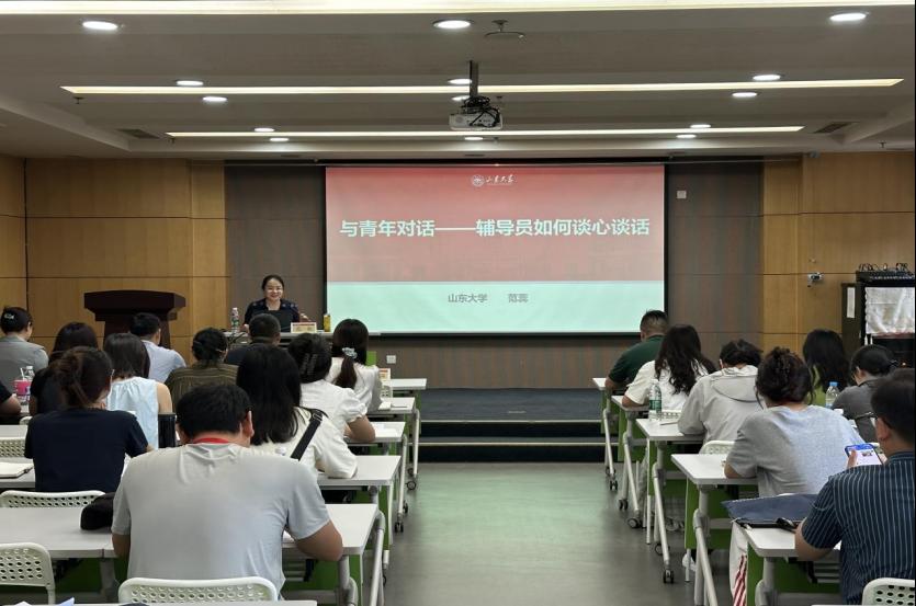 山东大学学生心理健康教育与咨询中心主任、学工部副部长范蕊以《与青年对话——辅导员如何与学生谈心谈话》为题,通过“望闻问切”四步法、心理疏导五步法等,破解“学生不愿说、辅导员不会听”的难题。