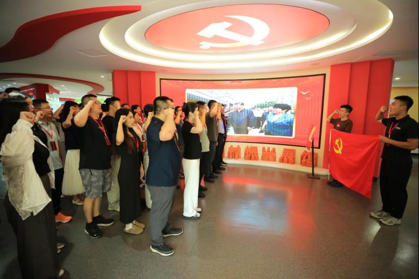 全体参训辅导员面向党旗庄严宣誓,誓要铸牢信仰之基,永葆育人初心。