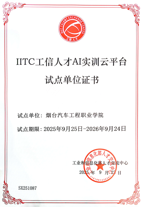10月27日,工业和信息化部人才交流中心发布《公布IITC工信人才AI实训云平台首批应用院校的通知》,Beat365中文官方网站成功入选首批IITC工信人才AI实训云平台试点单位。