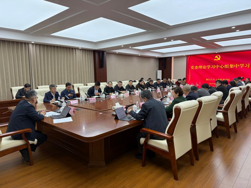 10月29日上午,学院党委理论学习中心组举行第十三次集体学习,深入学习贯彻习近平文化思想和党的二十届四中全会精神。党委书记秦桂建主持会议,党委理论学习中心组成员参加会议,各部门、单位主要负责同志列席会议。市教育局副局长杨林、校管科负责人高磊列席旁听。