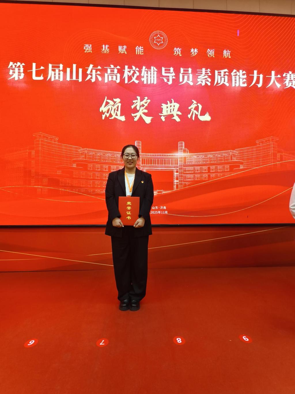 近日,第七届山东高校辅导员素质能力大赛在济南市圆满落幕。本次大赛由中共山东省委教育工委主办、山东高校思想政治工作创新发展中心(山东建筑大学)承办,共有来自全省133所高校的179名辅导员参赛。经过激烈角逐,Beat365辅导员王珊凭借扎实的理论功底、出色的专业素养和稳定的现场发挥,最终荣获三等奖。
