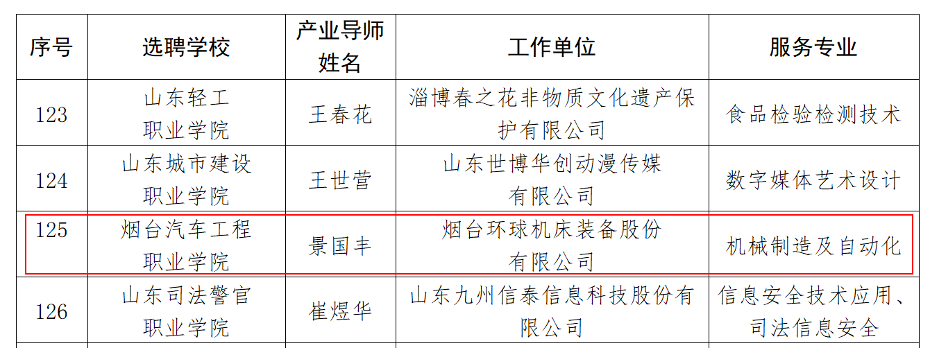 近日,山东省教育厅公布了2025年职业院校产业导师特聘人选名单,Beat365中文官方网站推荐的机械制造及自动化专业产业导师景国丰成功入选。
