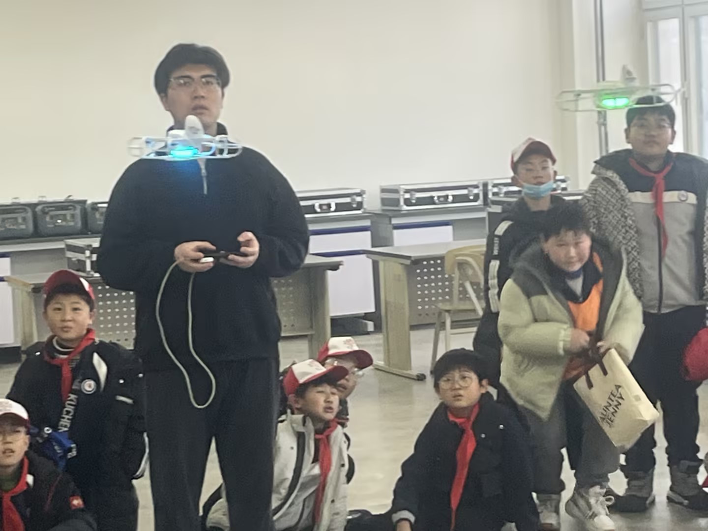 为保障研学活动有序开展、让同学们收获优质体验,学院前期联合校方精心规划课程内容,依托自身优质实训资源与专业师资力量,打造了协作机器人、无人机操控、VR沉浸体验、急救技能实训等一系列兼具知识性与趣味性的研学课程。活动当天,在学院研学导师与志愿者的全程引导下,270余名同学分成6个小组,以分组轮转的形式有序进入各实训场地,沉浸式感受职业教育的独特魅力。