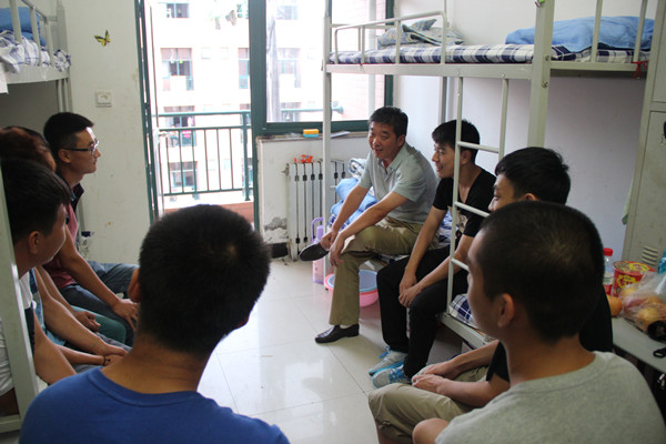 院领导详细了解了新生们的入住情况,询问他们对宿舍是否满意,关彻地询问学生家里的相关情况,了解他们生活的难处,并且对寝室用电安全、财产安全等问题加以强调。对即将开始的新生军训,院领导也对新生表示鼓励并提出了期望。学子们深深感受到了亲人般的温暖,与院领导们亲切交流。