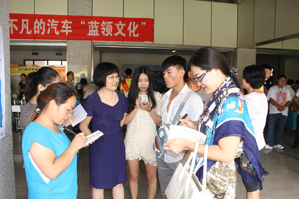随后,记者们走访了报到现场,并随机采访了汽车制造工程系2014级13班的孔德明、李恩鹏两位新生及其家长,了解到学生和家长对学院各方面印象都很好。
