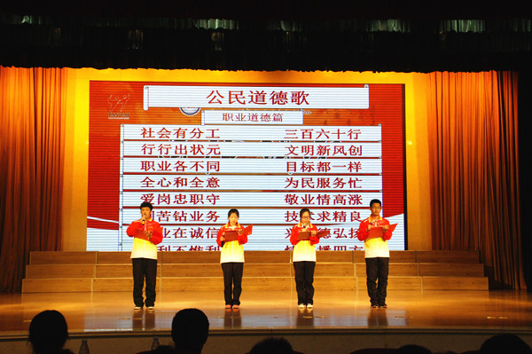 活动中,该系通过“唱歌曲、讲故事、学模范、诵经典、作点评”五个环节,使道德教育环环相扣,逐步深入。齐唱《学习雷锋好榜样》,激发了学生热心奉献、积极参与道德建设的热情;观看《感动中国》之郭明义事迹,使学生在面对自我与他人、个体与集体、索取与奉献等人生课题时,明晰了什么是正确的人生观与价值观;《道德经》经典朗诵,展现了中国传统道德文化的博大精深;在一番点评中,邹广安副主任倡导同学们从身边的小事做起,刻苦学习,乐于助人,自觉养成文明习惯,释放青春正能量,努力践行价值观。