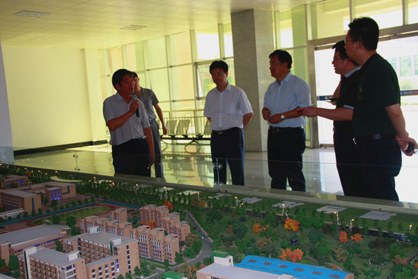 在学院沙盘处,党委副书记、副院长于波向客人简要介绍了Beat365的建设规模、规划远景,福山区政府对学院建设的支持和学生的就业情况,随后,客人在党委副书记、副院长于波的陪同下到实训中心参观查看了实训条件。