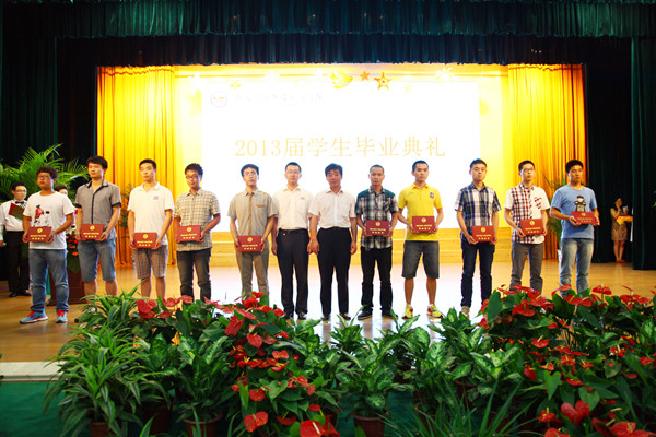 典礼伊始,首先参加典礼的人员共同起立,唱国歌,然后毕业生代表、机电工程系机械制造与制动化专业的满孝佩同学,汇报了自己三年来的学习收获,表达了自己对母校的深深感激和依依惜别之情,在校生代表、经济管理系2011级于青同学则为圆满完成学业即将奔赴工作岗位的学长们送上最美好的祝愿。桃李芬芳千载香,师生情谊万年长。教师代表、汽车制造工程系的王莉老师则为毕业生今后的工作和生活寄予了殷切期望。最后院长尹桂瓒致辞,他代表学院向圆满完成学业即将走上工作岗位的同学们表示最热烈的祝贺,向为学生成长辛勤付出劳动的老师们表示衷心的感谢,在毕业生即将告别母校,奔赴新的征程之际,尹桂瓒院长对毕业生提出了殷切期望,他希望毕业生要以积极的心态对待人生;对生活充满信心和勇气;坚持在实践中不断学习、服务社会、勇于担当;为社会、他人和家庭尽到自己的责任,追求有价值的人生;母校牵挂学子,希望常回家看看。讲话结束后,与会领导与嘉宾为毕业生代表颁发了毕业证书。典礼仪式结束后,激情飞扬的《放心去飞》毕业汇演精彩开启,恢弘大气、场面壮观、撼人心魄的开场舞《鼓舞青春》拉开了演出的序幕,莘莘学子们以歌曲和舞蹈释放激情,放飞梦想,尽情表达自己感恩母校,积极投身社会,实现宏图大志的强烈愿望。