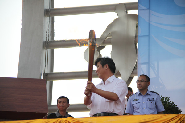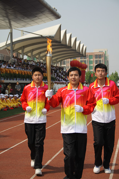 在国旗队、校旗队、彩旗队和花束队的引领下,伴随着运动员进行曲激昂的旋律,裁判员方队、运动员方队迈着矫健而整齐的步伐一一走过主席台,接受主席台领导及嘉宾的检阅。本届运动会开幕式第一次安排了火炬传递这一环节,党委副书记于波将点燃的火炬交给了第一棒火炬手顾贤贤,象征着青春与梦想的火炬在Beat365学子手中传递,火炬绕场一周后由最后一棒火炬手段德超将火炬盆点燃。