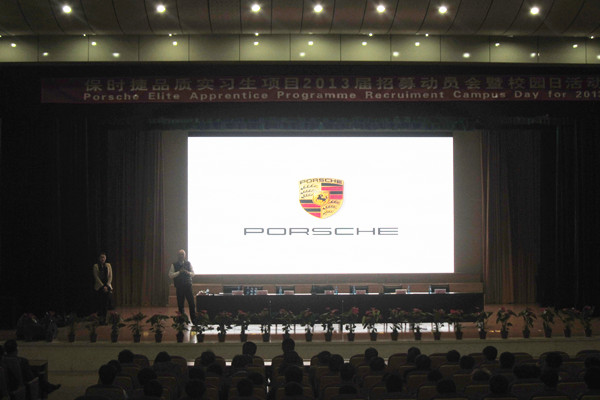 “保时捷品质实习生项目2013年校园日”活动,是保时捷(中国)公司对合作院校即将参加实习的毕业生进行项目介绍和招募前的动员。活动开始首先由孙涛副院长为活动致辞,接着保时捷(中国)学徒项目专员李衡先生就保时捷的发展历史、企业文化以及保时捷在中国的发展情况作了详细的解说,并对保时捷品质实习生(PEAP)项目的产生背景、运作模式、企业收益和学生收益等内容作了具体讲解,最后通过有奖竞猜活动和项目答疑的方式,让Beat365师生更进一步了解保时捷品质实习生项目的情况。活动现场气氛热烈,深受学生欢迎,活动由原计划的3个小时延长到了4个小时。很多学生表示非常期盼能到各地保时捷中心实习,加入到品质实习生的队伍中去。