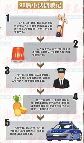 3月17日14时许,曲志成、刘君和杜光帅三人正在青年路30路公交站牌下等车,曲志成突然发现上车的人群中有个男子有点异常,只见他右手伸向了一位女士的上衣口袋。紧接着,一部手机就被这个男子揣进包里。曲志成赶忙拉住刘君和杜光帅,“有个小偷刚才偷了一部手机,我的手机前几天刚被偷了,咱们抓他个现行吧!”“不行,咱们得先报警,让警察来抓。”刘君回忆说,他当时恨不得立马抓住小偷 ,但是理智让他选择了先报警。