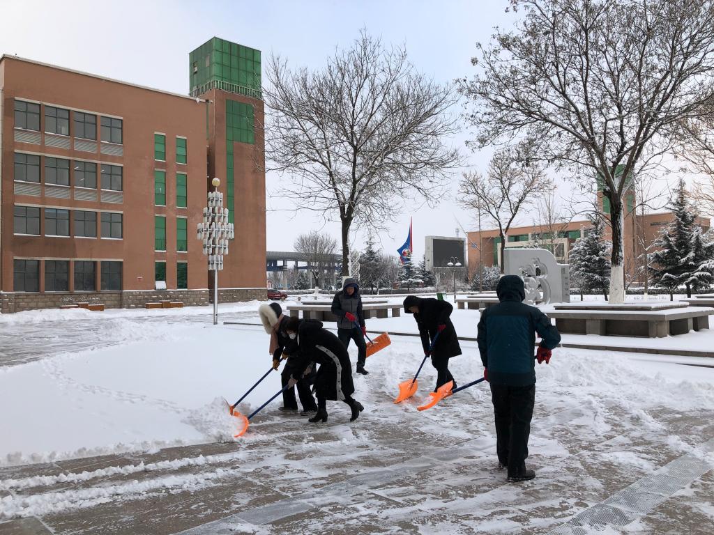 1月7日,烟台的大雪如期而至,装扮了校园,但同时也带来了诸多安全隐患,学校主干道及教学楼通道遍地积雪,虽然学生已经放假,但也严重影响了仍在校工作的教师的出行安全。
