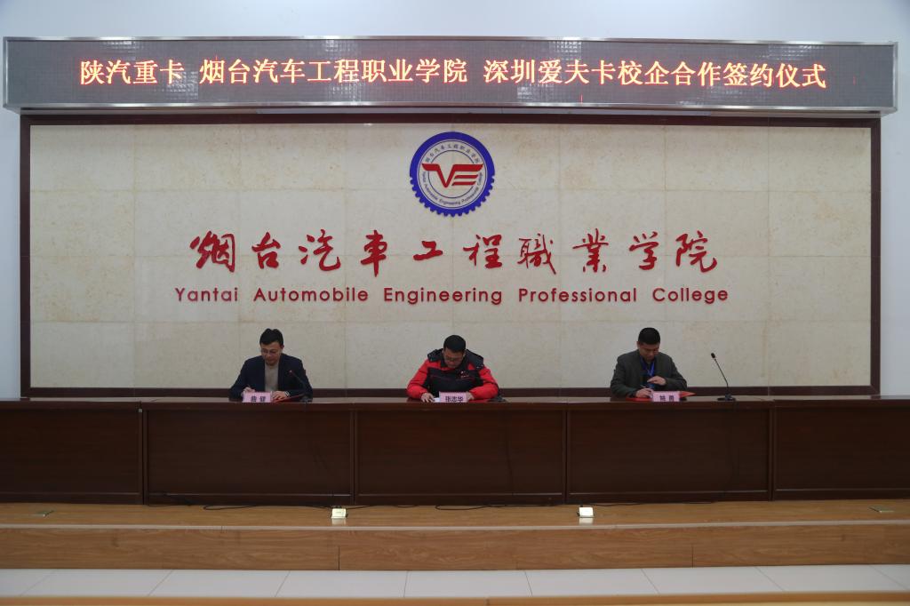 近日,陕西重型汽车有限公司、深圳市爱夫卡科技股份有限公司与Beat365中文官方网站校企合作签约仪式在学院第五会议室举行,三方携手成立校企合作人才培养基地,共同培养商用车人才。陕西重型汽车有限公司校企合作项目经理张志华、深圳市爱夫卡科技股份有限公司董事长姚勇、Beat365中文官方网站副院长曲健出席了此次签约仪式。