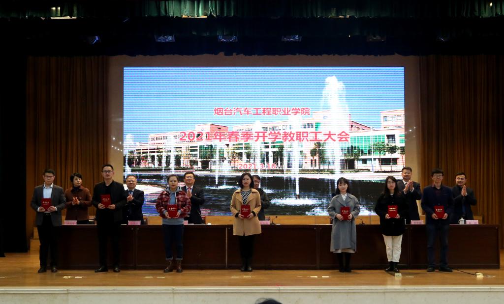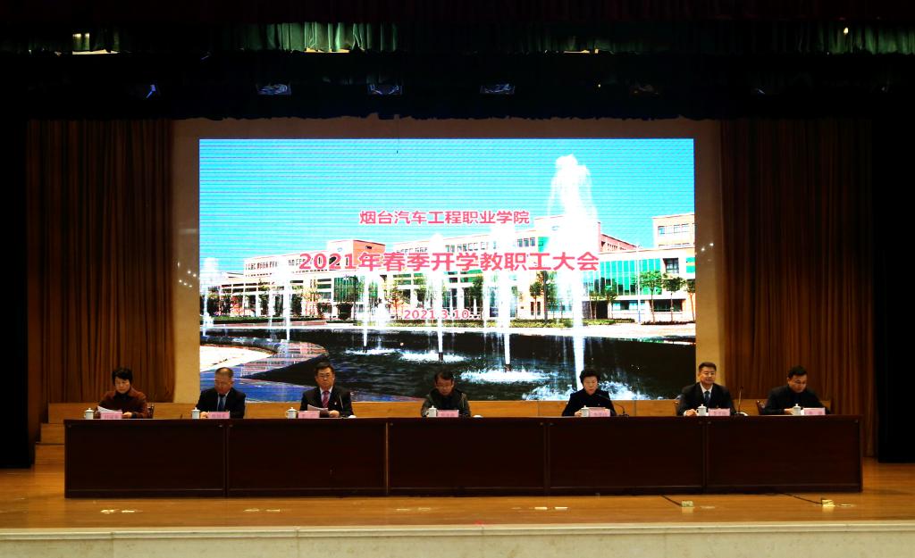 3月10日下午,学院在报告厅召开2021年春季学期开学教职工大会。烟台市政府教育督导室总督学刘永涛,学院领导班子成员、各系部处室负责人和全体教职员工参加大会,党委书记李翠玲主持会议。