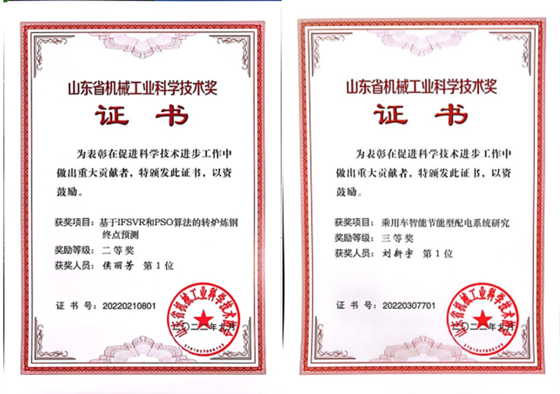 近日,山东省机械工业科学技术协会公布了2022年度山东省机械工业科学技术进步奖项目评审结果,学院报送的7项成果中有1项获二等奖、5项获三等奖。其中,“基于IFSVR和PSO算法的转炉炼钢终点预测”喜获二等奖,“乘用车智能节能型配电系统研究”“工业用下肢支撑外骨骼设计与评估研究”“五彩智能鸡蛋分选机设计”等5个项目获三等奖。
