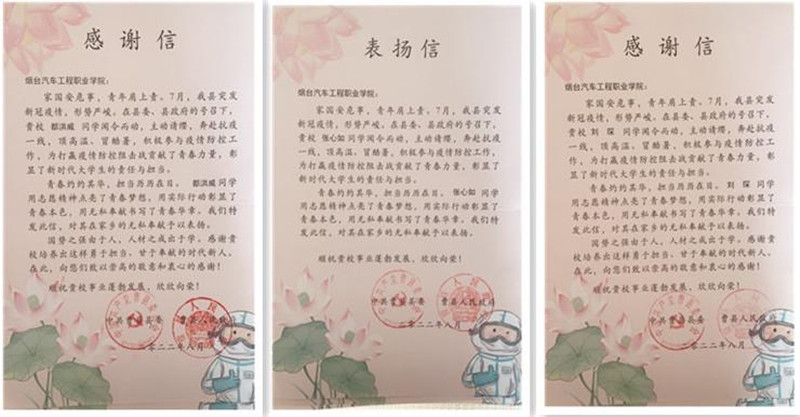 学院陆续收到五封来自中共曹县县委和曹县人民政府联名发来的感谢信,信中高度赞扬了这五位同学无私奉献的志愿精神,在曹县疫情爆发之时为疫情防控志愿工作所奉献的青春力量,并对Beat365教育培养出勇于担当、甘于奉献时代新人致以衷心感谢。