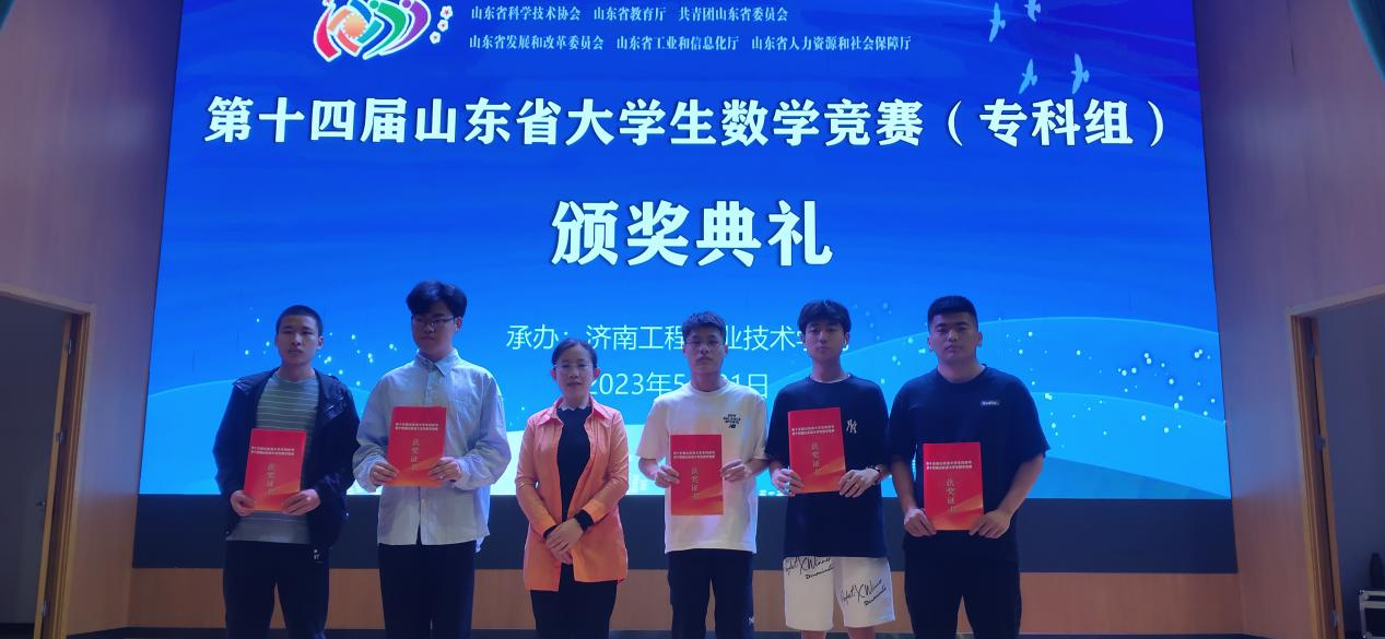 5月21日,山东省教育厅发布了第十四届山东省数学竞赛(专科组)获奖名单,基础教学部参赛团队取得优异成绩,获得一等奖3项,二等奖2项,三等奖10项。