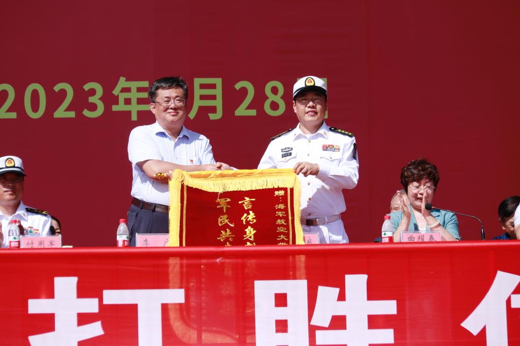 院长李广代表学院向承训部队海军航空大学航空基础学院赠送锦旗。