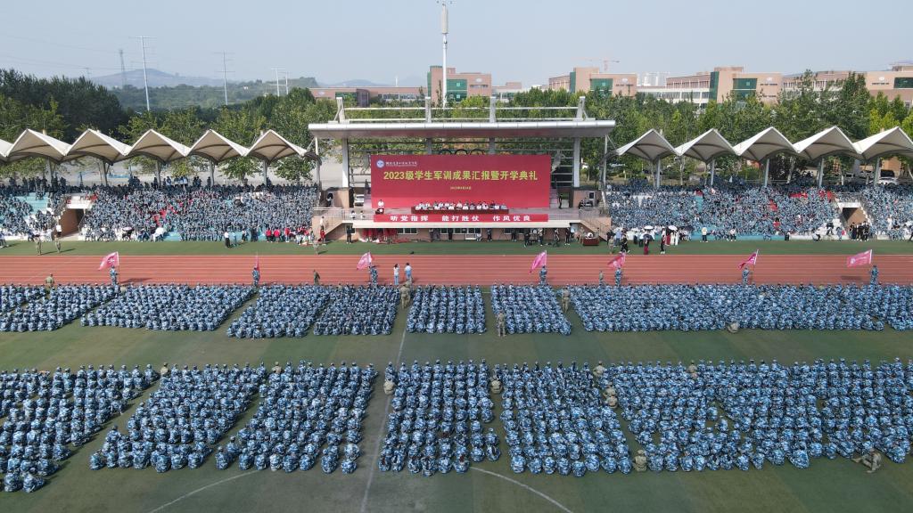 9月28日上午,学院2023级新生军训成果汇报暨开学典礼在东操场举行。承训部队海军航空大学航空基础学院大校、副院长吴玉良、海军航空大学航空基础学院四大队上校、大队长付用军,学院党委副书记、院长李广,党委副书记曲耀春,副院长付双美以及各系部、处室的负责人出席大会。大会由党委副书记曲耀春主持。