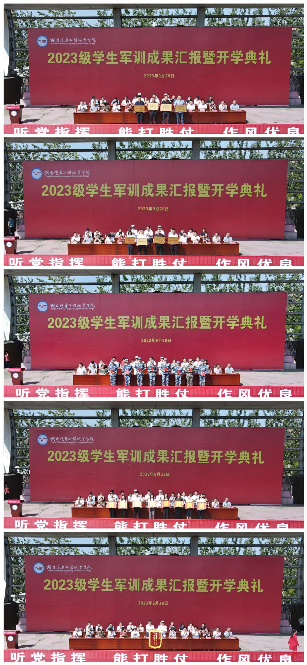 副院长付双美宣读《关于表彰2023级新生军训先进个人和先进集体的决定》。学院4个先进单位、4个优秀组织单位、60个先进班集体、1个特殊贡献军训教官团、232名军训标兵受到表彰。