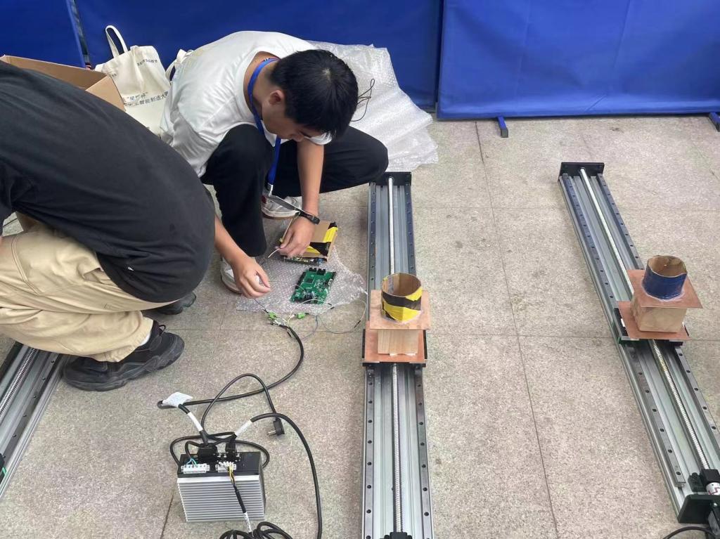 参赛学生从组装擂台机器人到优化结构、从购买材料到搭建比赛场地、从反复测试到最终验证,精益求精每个细节。在平稳输送赛中,运动组件的移动平台载着装满水的水杯在初始出发点和距初始出发点1000mm的终点间往复运动5个来回,仅用时19s和21S,在众多参赛作品中,脱颖而出,勇夺一等奖的桂冠。