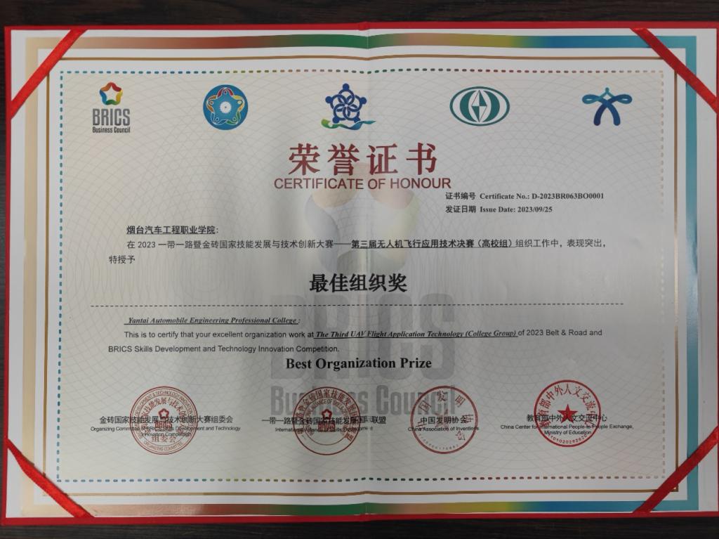由金砖国家工商理事会(BRICS BC)、一带一路暨金砖国家技能发展国际联盟(IASDB)、教育部中外人文交流中心等单位联合主办的2023一带一路暨金砖国家技能发展与技术创新大赛第三届无人机飞行应用技术决赛在济南电子机械工程学校举行。