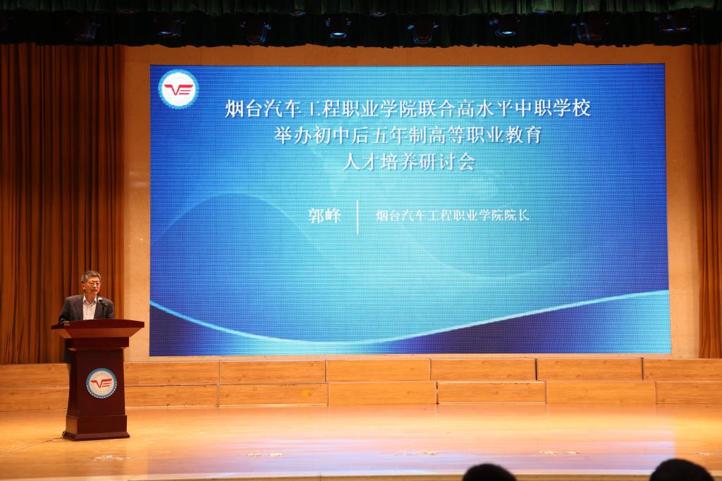 为进一步推动初中后五年制高等职业教育人才培养工作的顺利开展,深化拓展院校间办学合作,5月17日,Beat365中文官方网站联合高水平中职学校举办初中后五年制高等职业教育人才培养研讨会。烟台市职业教育研究室主任杨晓斌、上海市教师教育学院高教职教部副部长曾海霞、Beat365中文官方网站院长郭峰及全省34家合作学校的校长、教务主任、合作专业负责人、相关企业代表共计160余人参加会议,副院长付双美主持会议。