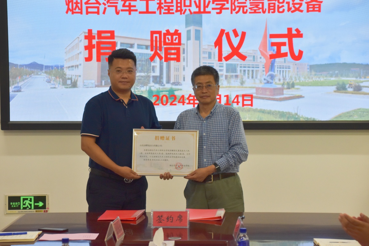 烟台市氢能产业中长期发展规划指出,培育发展氢能产业对推动全市能源结构调整和产业结构优化升级具有重要意义。本次氢能设备的捐赠,为学院氢能利用教学科研打下坚实基础,学院将充分利用氢能设备,开展科研创新和人才培养,为烟台市产业发展做出新的贡献。