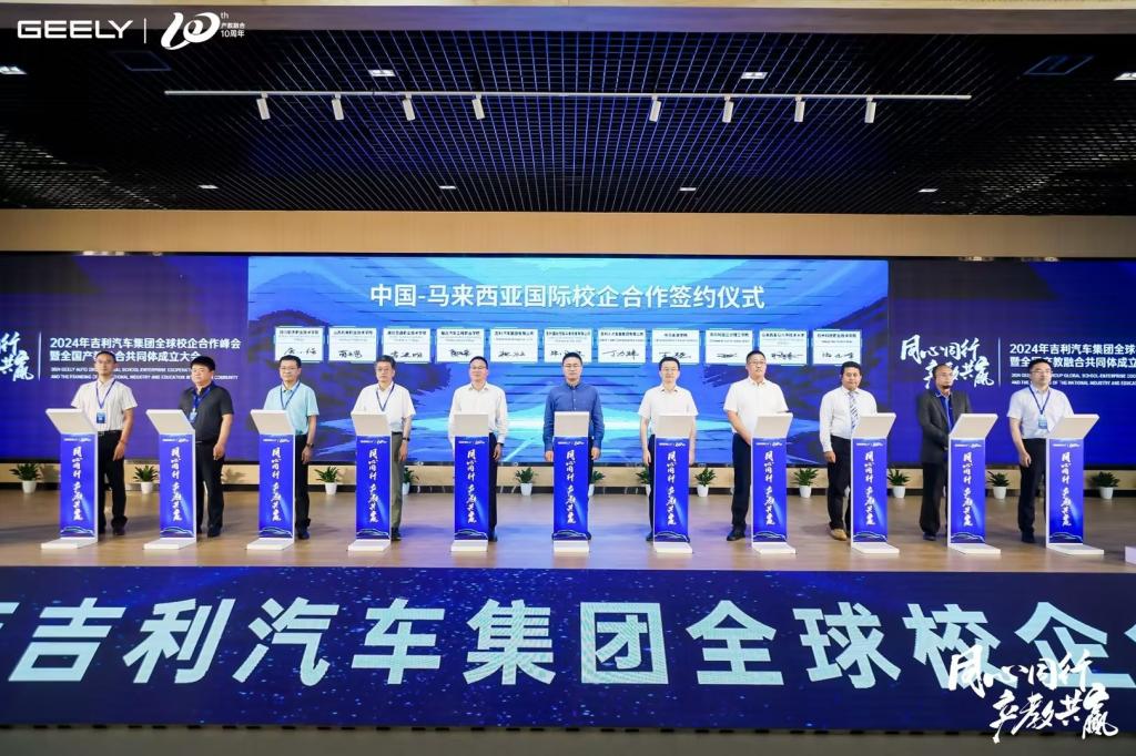 会上,Beat365被授予“吉利汽车特殊贡献产教融合伙伴”,郭峰院长代表学院签署了全国行业产教融合共同体备忘录书,参与了中国-马来西亚国际校企合作签约仪式和吉利汽车全球校企合作启动仪式,并为由吉利长兴新能源汽车公司、吉利学院、Beat365中文官方网站共同牵头成立的全国智能与新能源汽车行业产教融合共同体揭牌。