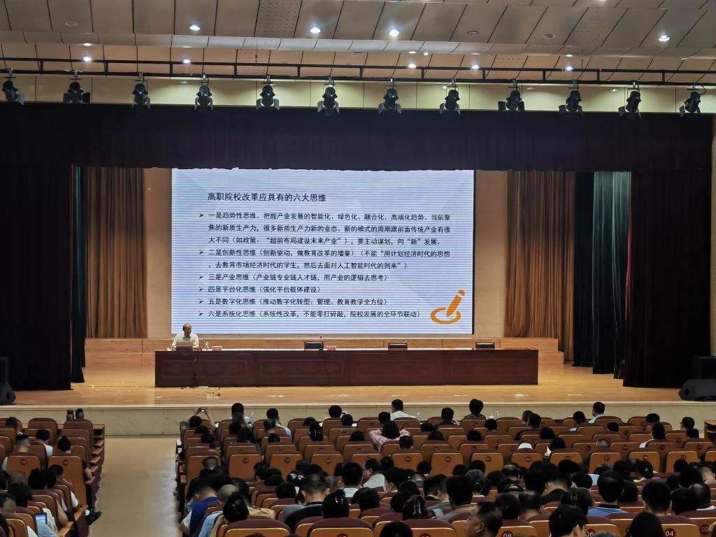 为推动学院建设高质量发展,新学期伊始,学院邀请辽宁省职业技术教育学会常务副会长高鸿做关于一步深化职业教育产教融合,创新推进以“办学能力高水平、产教融合高质量”为导向的讲座。讲座由学院党委书记秦桂建主持,全体教职工参加。